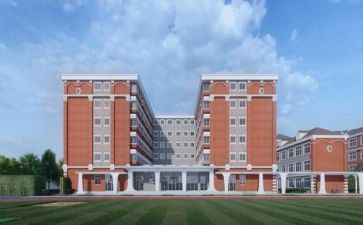 学校的教学楼和宿舍楼之间都有走廊连接着,走上教学楼或宿舍楼的楼顶,你会看到学校的布局大概像“工”字。